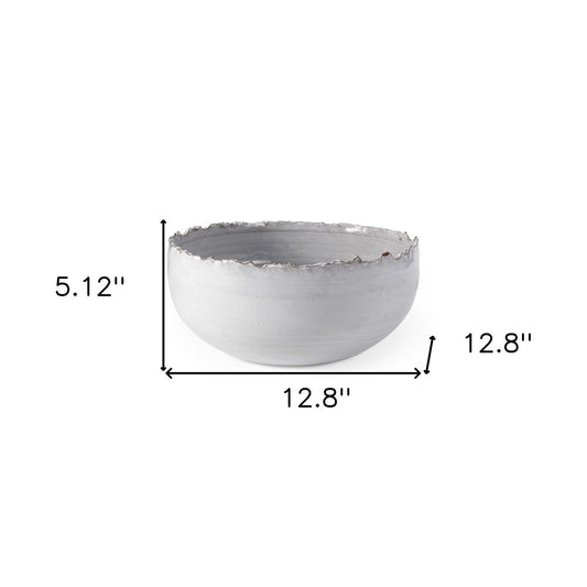 13" White Ceramic Torn Edge Round Centerpiece Bowl