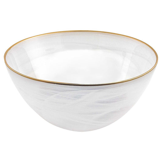 10" White and Gold Alabaster Glass Round Serving Bowl