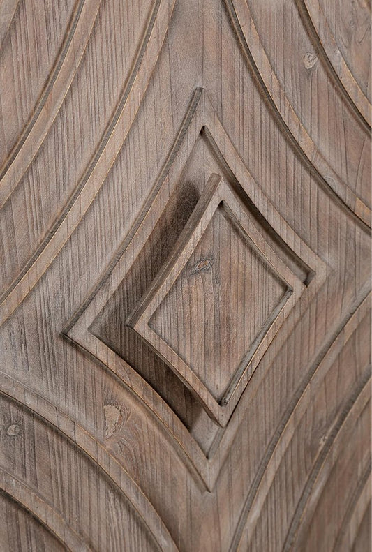 60" Natural and Brown Distressed Carved Geometric Sideboard with Four Doors
