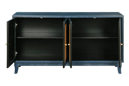 60" Teal Blue Ribbed Texture Sideboard with Four Doors