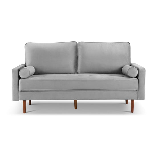 69" Gray Velvet Sofa And Toss Pillows With Dark Brown Legs