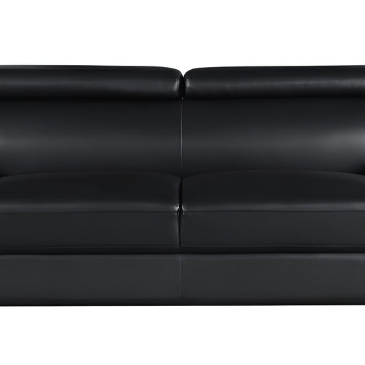 83" White Italian Leather USB Reclining Sofa With Black Legs