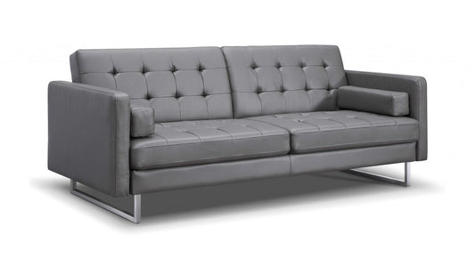 80" Gray Faux Leather Sleeper Sofa With Silver Legs