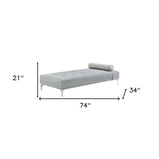 85" Light Gray Polyester Blend Convertible Futon Sleeper Sofa And Toss Pillows With Silver Legs