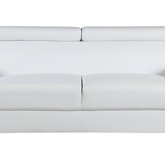 86" White Leather Sofa With Silver Legs