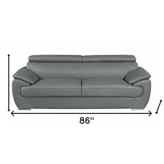 86" Gray Leather Sofa With Silver Legs