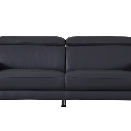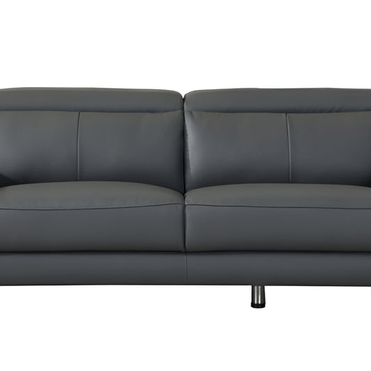 87" Dark Gray Italian Leather Sofa With Silver Legs