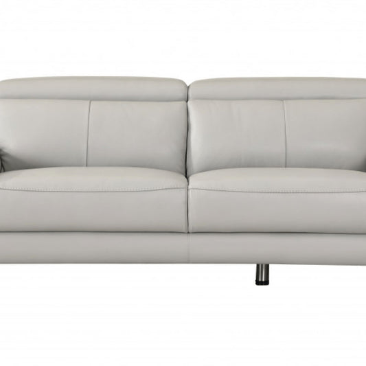87" Light Gray Italian Leather Sofa With Silver Legs