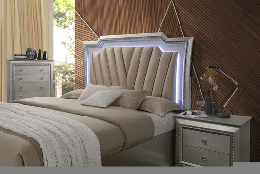 67" X 91" X 69" Pu Champagne Wood Upholstered (Hb) Led Queen Bed