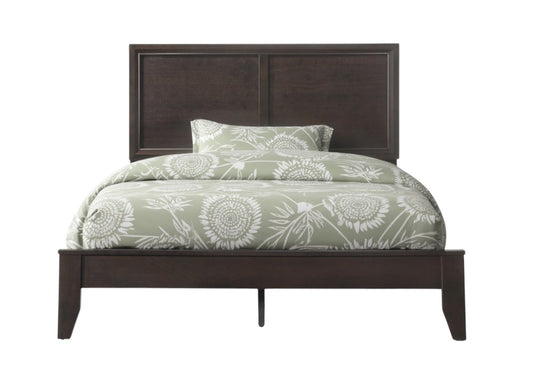 Espresso Inlaid Panels Wood Queen Bed Frame