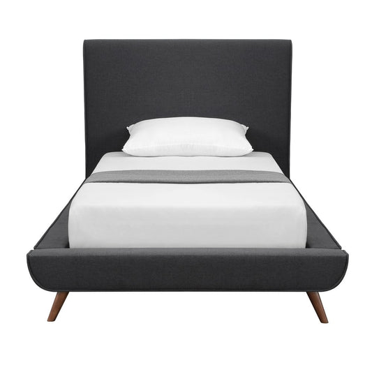 Charcoal Solid Wood Twin Upholstered Linen Bed
