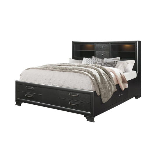 Solid Wood Full Black Eight Drawers Bed