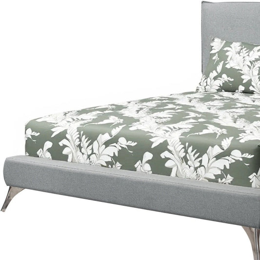 White Solid Wood Queen Upholstered Linen Bed Frame