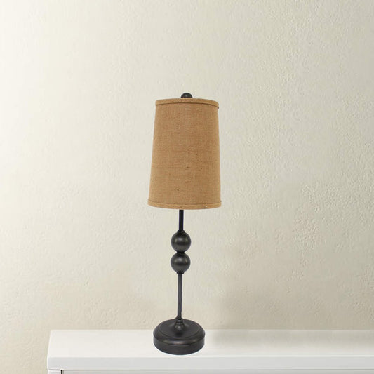 29" Distressed Black Metal Bedside Lamp With Beige Shade