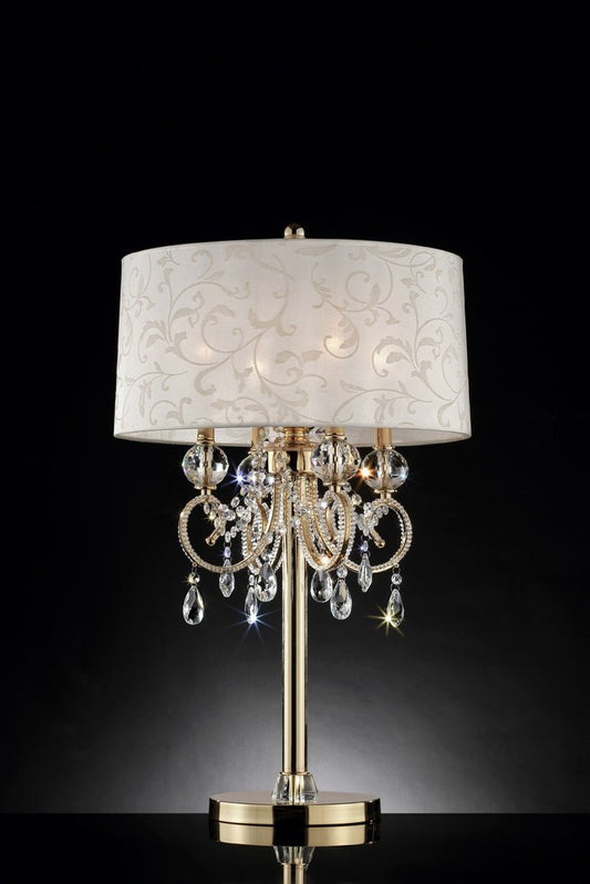 34" Gold and Faux Crystal Three Light Chandelier Table Lamp