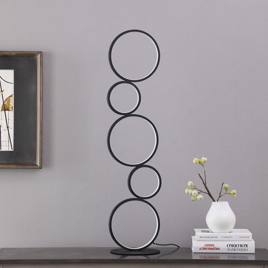 39" Black Metal Five Circle Geometric Sculpture LED Table Lamp