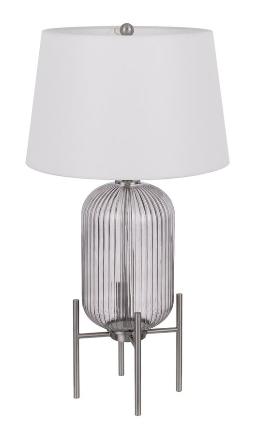 33" Nickel Glass Round Table Lamp With White Empire Shade
