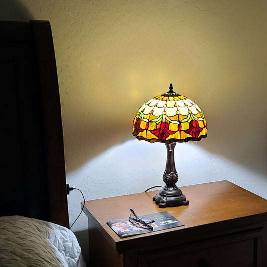 18" Tiffany Style Floral Dark Brown Base Table Lamp