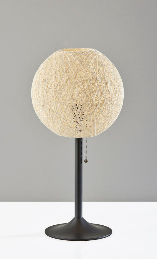 23" Black Rattan Round Table Lamp With Ivory Drum Shade