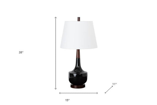 28" Black Solid Wood Candlestick Table Lamp With Off White Drum Shade