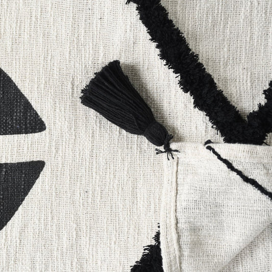 50" X 60" Black and White Woven Cotton Geometric Throw Blanket with Tassels