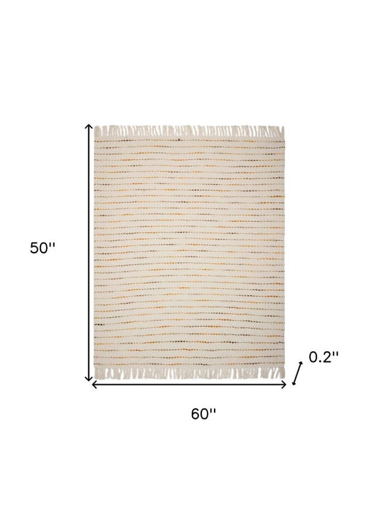 50" X 60" Gold and Ivory Woven Cotton Striped Throw Blanket with Tassels