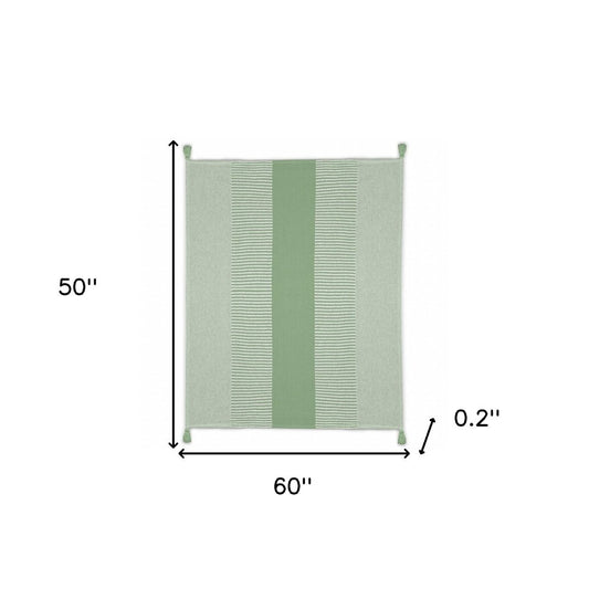 50" X 60" Olive Green Cotton Knitted Striped Throw Blanket