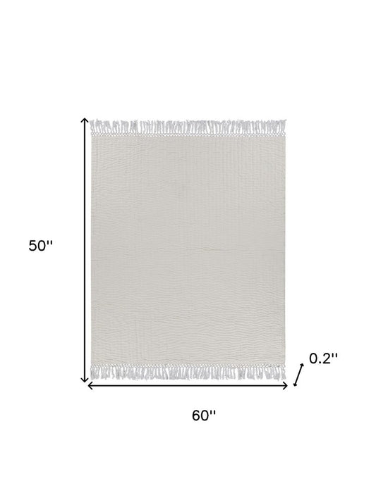 60" X 50" Cream Woven Cotton Herringbone Throw Blanket with Fringe