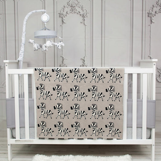 Grey Lots Of Zebras Woven Knitted Baby Blanket