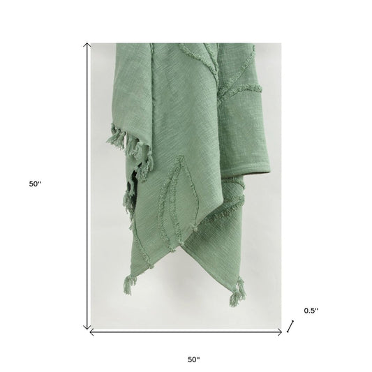 Green Woven 100% Woven Textured Cotton Throw Blanket