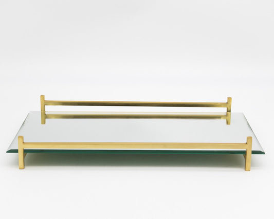 16" Mirror and Gold Rectangular Glass Vanity Tray