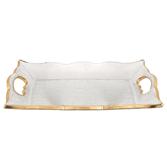 10" White and Gold Rectangular Wood Handmade Serving Tray