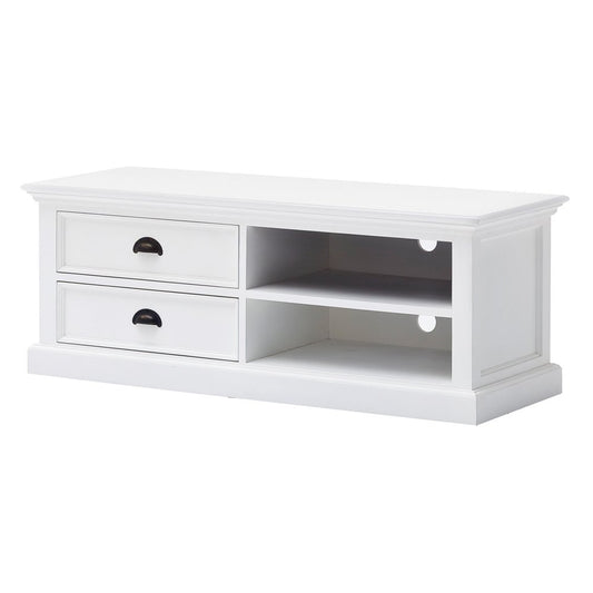 47" White Solid Wood Drawers and Open Shelving Entertainment Center