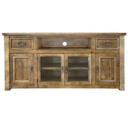 70" Desert Sand Solid Wood Open shelving Distressed TV Stand
