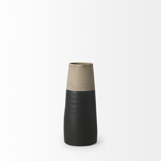 10" Black And Natural Color Block Cylinder Ceramic Jug Vase