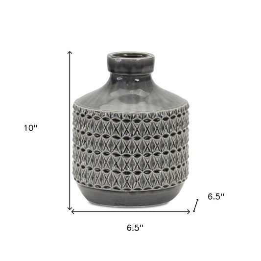 10" Gray Geometric Bud Terracotta Table Vase