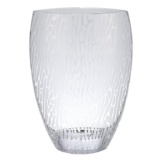 12" Clear and Frosted Abstract Oval Crystal Table Vase