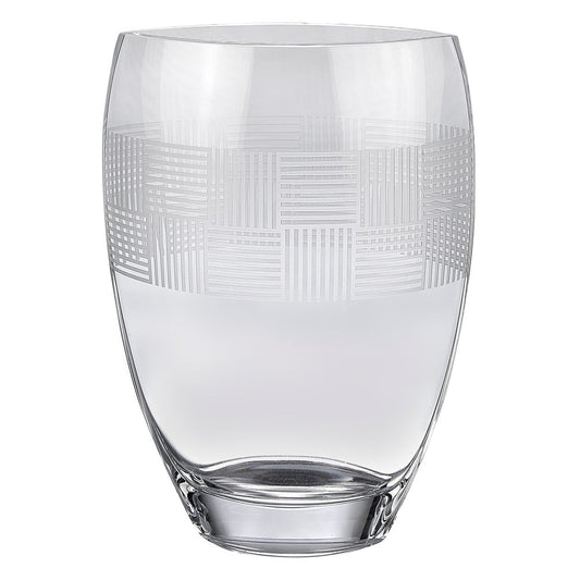 12" Clear With Geometric Pattern Oval Crystal Table Vase
