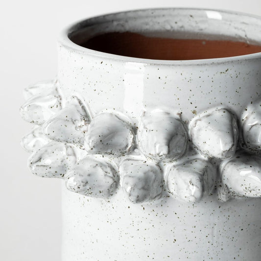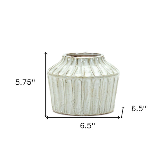 6" Ivory Ribbed Round Terracotta Table Vase