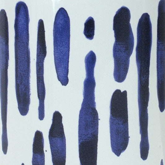 9" Black and Blue Striped Cylinder Clay Table Vase