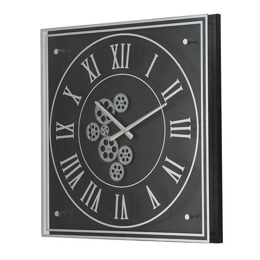 24" Black and Silver Vintage Style Gears Square Wall Clock