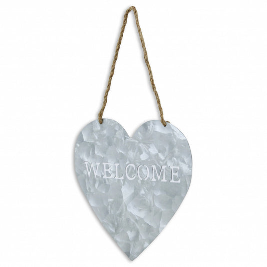 10" Gray Galvanized Metal Heart Shaped Welcome Wall Decor