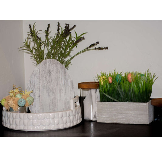 18" X 14" White Reclaimed Wood Egg Shaped Wall Decor