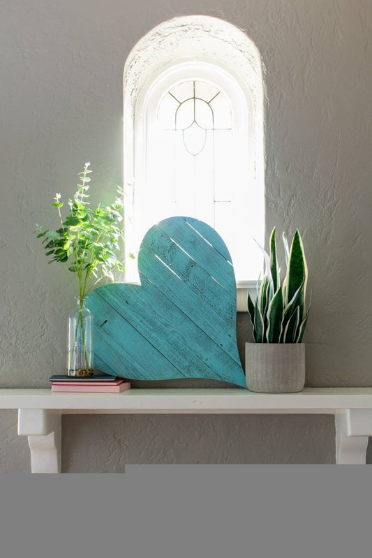 18" Turquoise Reclaimed Wood Heart Wall Decor