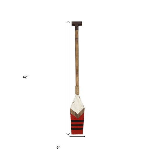 42" Natural And Red Distressed Coastal Wood Oar Wall Decor
