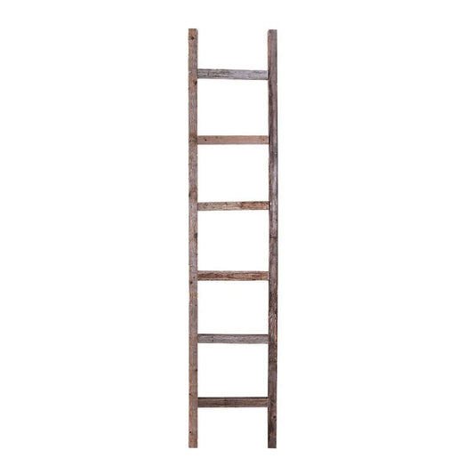 72" Six Step Rustic Weathered Grey Wood Ladder Shelf