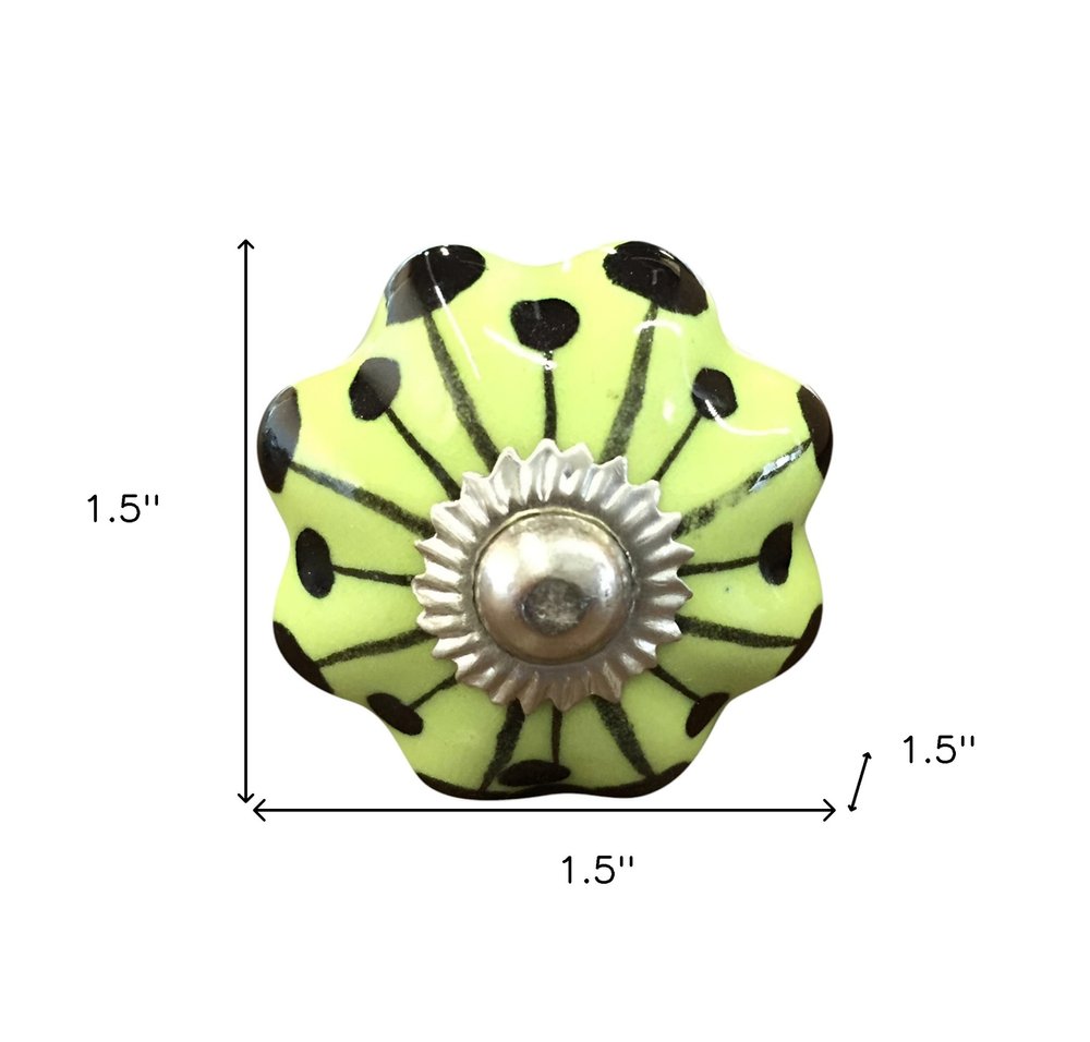 Transform your space quickly and easily with this set of eight lemon black and silver botanical ceramic drawer pull knobs. A favorite of designers and diyer's alike, these high quality novelty knob traditional style knobs are versatile in use and will change up the look of your existing furniture and cabinetry in a snap. Hand-painted by talented artisans, these knobs will add a touch of artisanal design. 1.5-inch h x 1.5-inch w x 1.5-inch d.