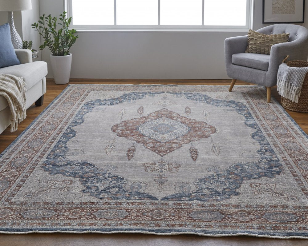 Add great coloration and comfortable texture to your space with this 10-foot gray red and blue floral runner rug with fringe. Ideal for spaces with kids and pets, this rug is stain resistant to help repel dirt and spilled liquids. Built to last, this rug crafted from polyester fibers is known for its durability and long lasting appeal. Rugs are a great way to showcase your style, hide imperfections, warm your home and reduce noise. Tassel ends bring a timeless and fashionable look to your interior. 32.00-inch h x 120.00-inch w x 0.25-inch d.
