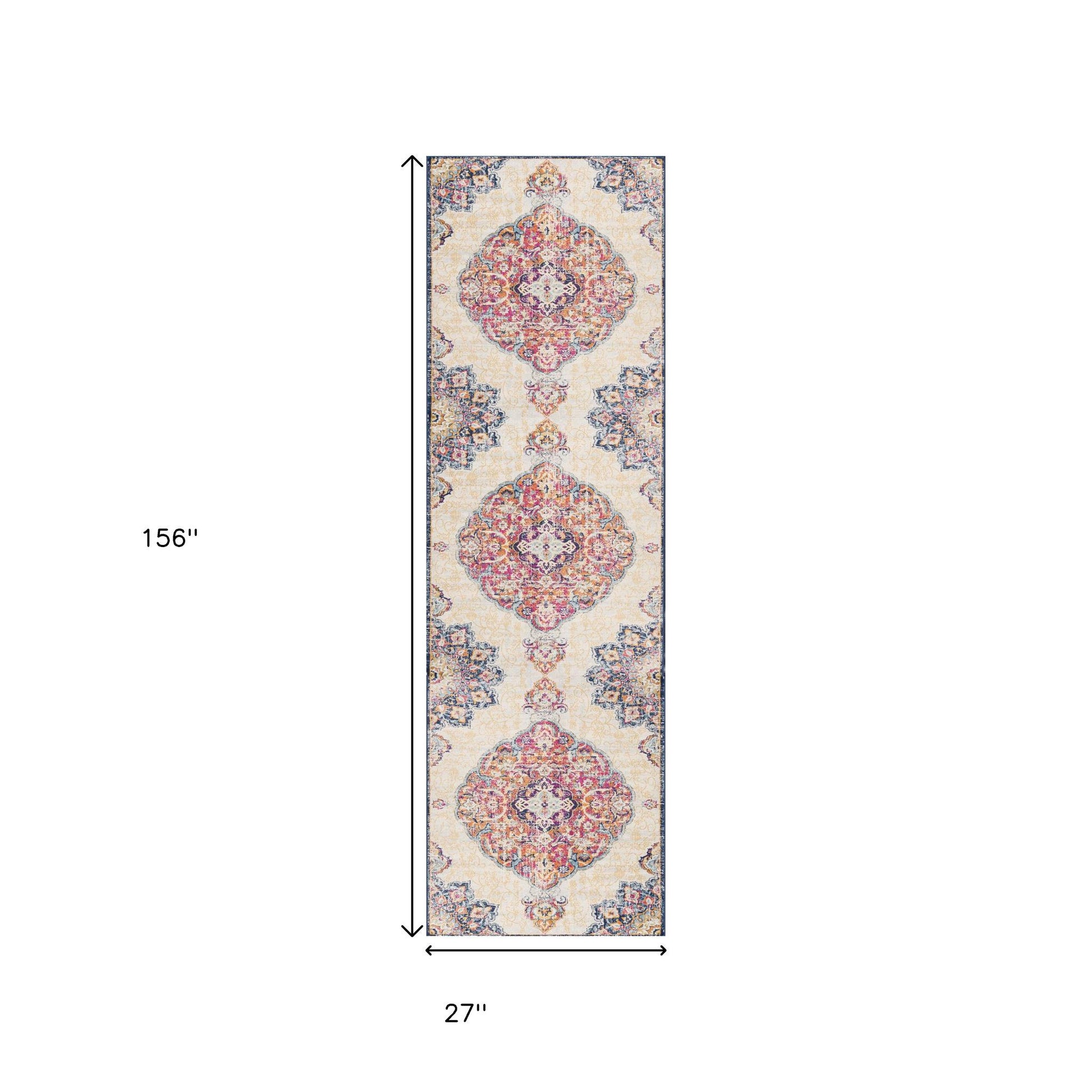 Add great coloration and comfortable texture to your space with this 10-foot blue and beige medallion runner rug. Built to last, this rug crafted from polypropylene fibers is known for its durability and long lasting appeal. Rugs are a great way to showcase your style, hide imperfections, warm your home and reduce noise. This rectangular shaped rug features a abstract design that will add a functional and decorative accent to your space. This traditional style runner makes a great accent for the hallway, in front of cabinets, in the laundry room, or any other space you need a narrow and long rug. 27-inch h x 120-inch w x 0.4-inch d.