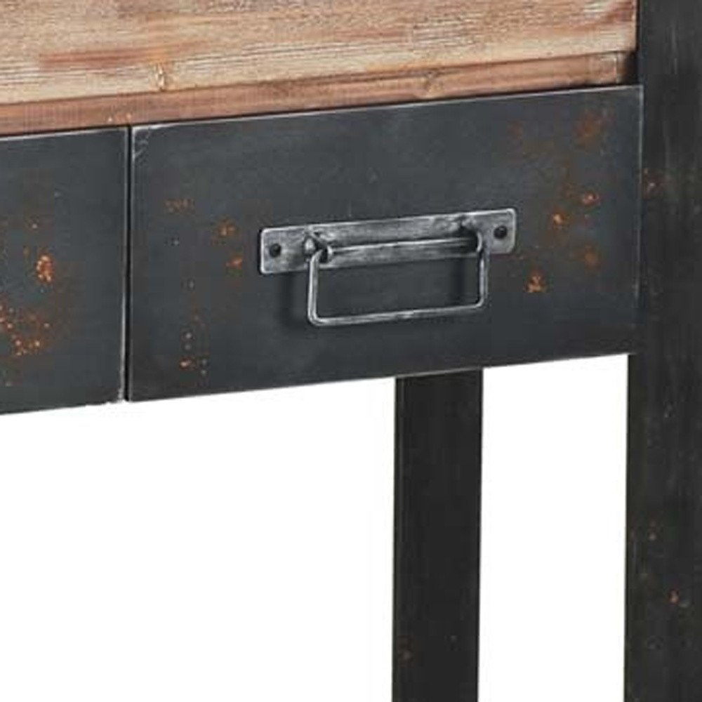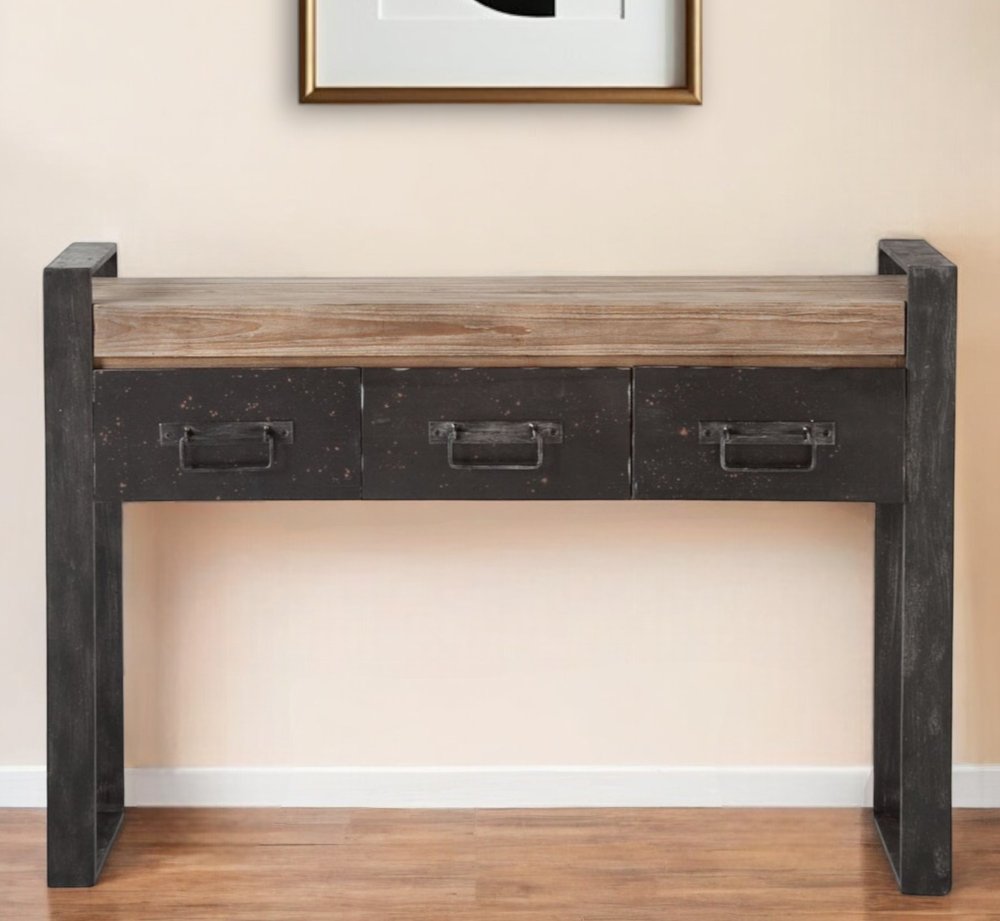 12" Brown and Black Solid Wood Sled Console Table And Drawers